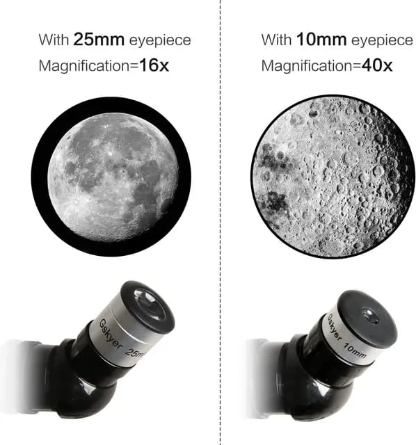 - Yüksek Büyütme: 2 göz merceği (H20mm ve H6mm) ve 3X Barlow lens ile donatılmış teleskop. 3x Barlow lens, her bir göz merceğinin büyütme gücünü üç katına çıkarır, böylece çocuklar 15X'ten 150X'e büyütme elde edebilir. İster gezegenleri ister ayı izliyor olsun, teleskopumuz yetişkinler ve çocuklar için en iyi yardımcıdır. 812 yaş arası yetişkinler ve çocuklar ve astronomiye yeni başlayanlar için harika bir teleskop.