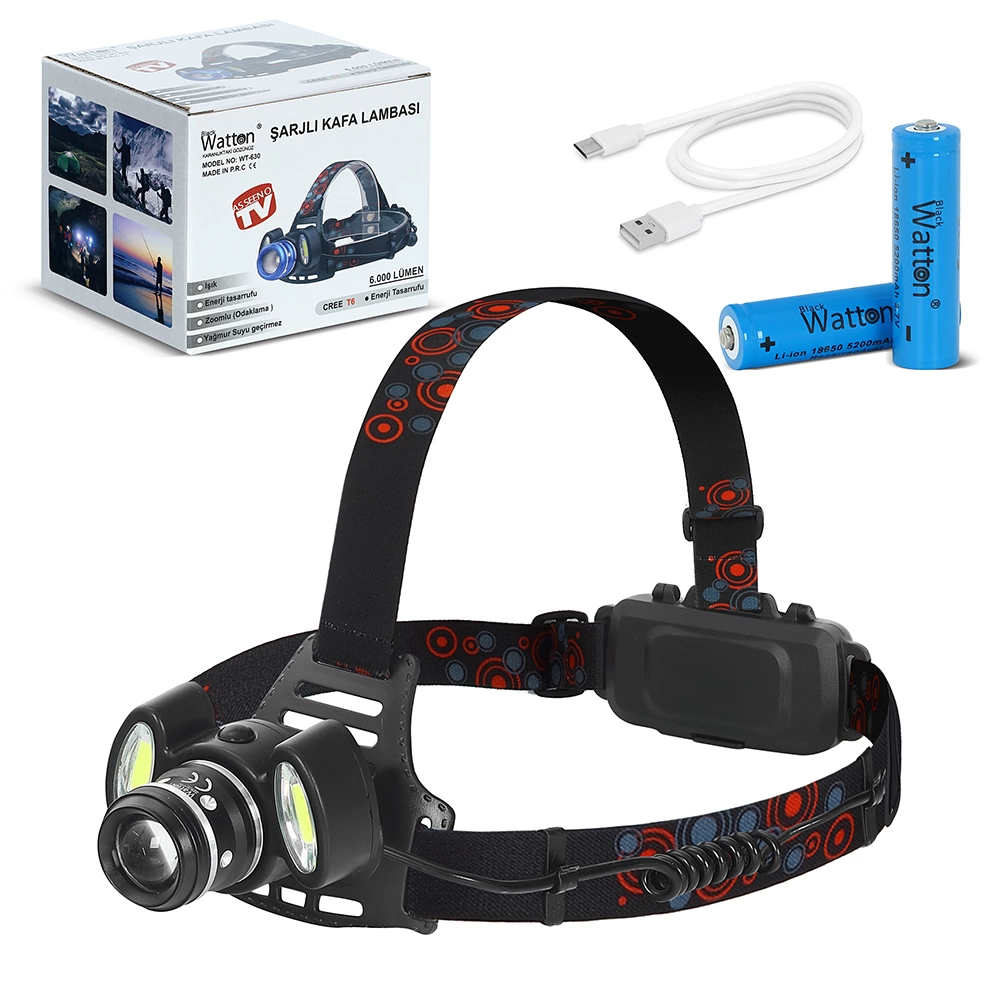 6000 Lümen 3 Başlık Şarjlı Kafa Lambası Wt-630
