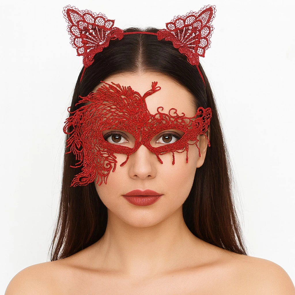 Alevin Zarafeti Kırmızı Dantel Maske Ve Taç Seti 4 No – Kadın Kostüm Tamamlayıcı
