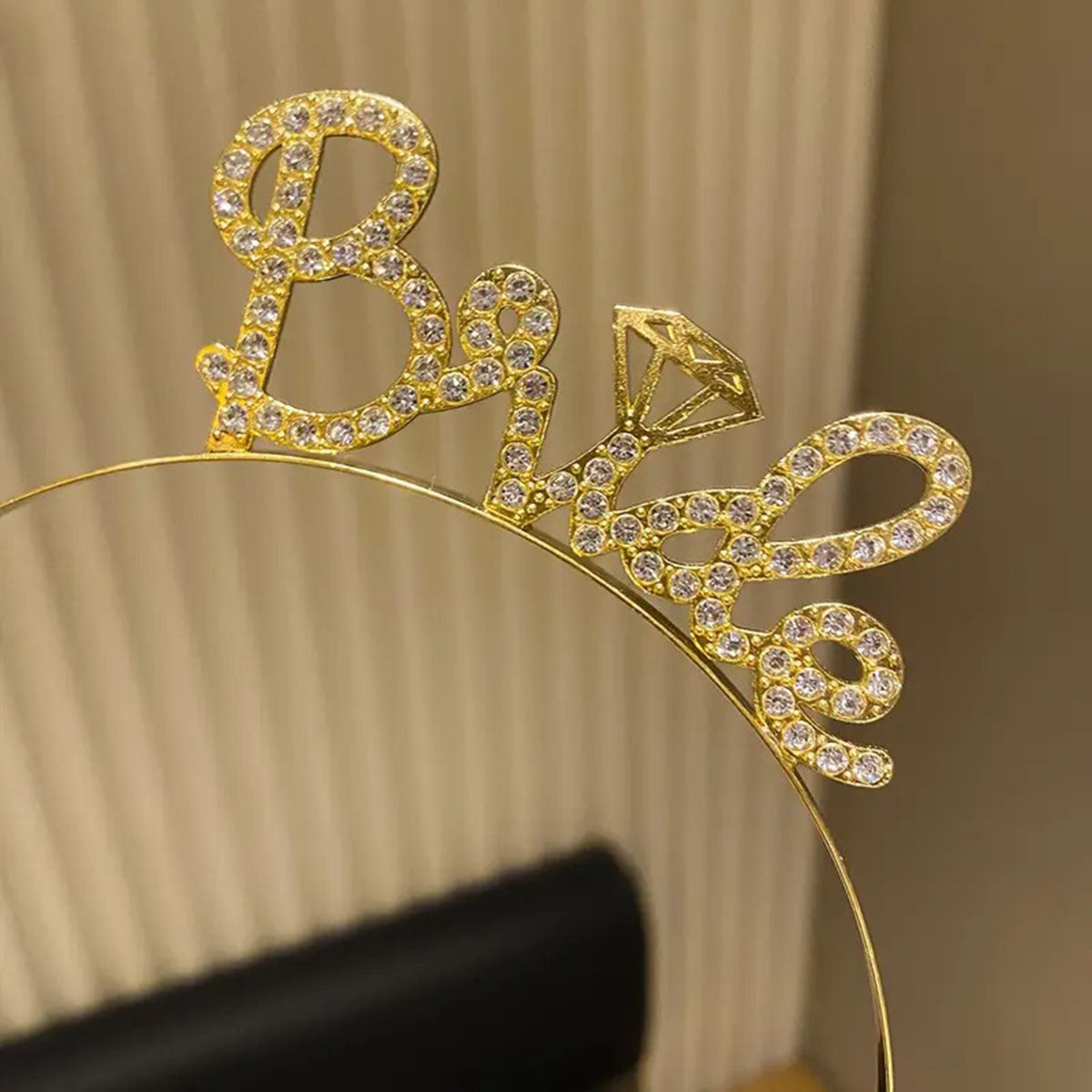 Altın Renkli Taşlı “Bride” Gelin Tacı – El Yazısı Yazı Tipiyle