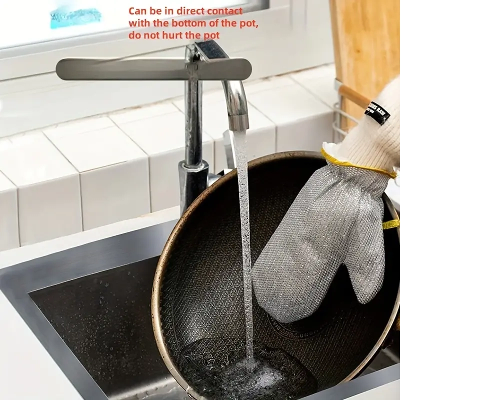 ALÜMİNYUM FOLYO BULAŞIK ELDİVENİAlüminyum Folyo Bulaşık Eldiveni, dört parmak ve baş parmak bölmesi ile pratik bir tasarıma sahiptir. Bu özel dizayn, kullanıcıya maksimum kontrol sağlar. Tek eldiven olarak sunulan ürün, zorlu bulaşıkları etkili bir şekilde temizlemek için idealdir. Kararan tavalar gibi çeşitli mutfak ekipmanlarını kolayca parlatmak için güçlü bir destek sunar. Dayanıklı malzemesiyle uzun ömürlü kullanım vaat eder, böylece mutfak işlerinizde güvenilir bir yardımcınız olur.Alüminyum folyo bulaşık eldiveni, özel tasarımı sayesinde ellerinizi nemden ve zorlu temizlik maddelerinden korur, böylece konforlu bir kullanım sunar. Güçlü alüminyum folyo malzemesi, sıcak suya dayanıklılık göstererek ağır ya da yağlı bulaşıkları yıkarken ellerinizi korur. Aynı zamanda esnek yapısı, eldivenin ellerinize tam oturmasını sağlar, böylece herhangi bir bulaşık işlemi sırasında güvenilir bir kavrama sunar. Mutfakta hijyen ve etkili temizlik arayanlar için ideal bir yardımcıdır.Sıcak tava, borcam, tepsi gibi ürünleri güvenli bir şekilde taşıyabilirsiniz.Tek fiyatıdır.Paket İçeriği1 alüminyum folyo bulaşık eldiveni