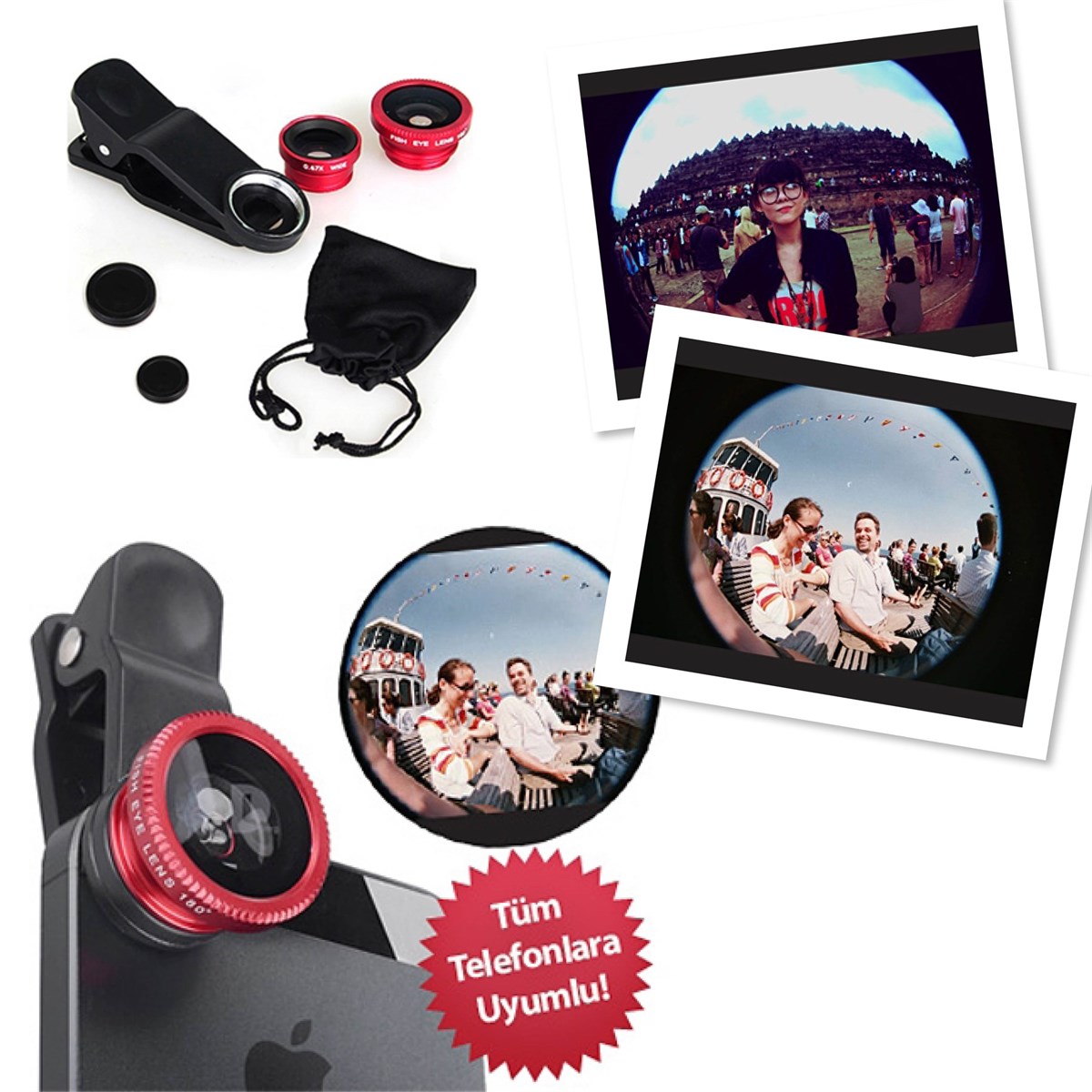 Son dönemde birçok sosyal paylaşım sitesinde arkadaşlarınızın paylaştığı fish eye görüş açısıyla çekilmiş fotoğrafları fark etmişsinizdir. Peki ama nasıl bu görüş açısını yakalıyorlar? Tabi ki Universal Geniş Açılı Lens Fish Eye ile! Tüm akıllı telefonlar ile uyumlu lensler sayesinde, ister seyahat ettiğiniz yerlerde isterseniz de arkadaş grubunuz ile harika kareler yakalamak artık mümkün. Paket içeriğindeki 3 adet lens ile farklı görüntüler yakalayabilir ve bu görüntüleri arkadaşlarınızla paylaşabilirsiniz. Son derece kolay kullanıma sahip lensleri paket içeriğine dahil lens mandalı ile tüm akıllı telefonlarda kullanabilirsiniz. Kullanım Talimatı: Lens mandalını telefonunuzun kamerasına denk gelecek şekilde yerleştirin. Kullanmak istediğiniz lensi lens mandalına çevirerek takın. Ürün Özellikleri: 2 adet farklı lens (fish eye- macro wide) Lens mandalı ile akıllı telefonlara uyumlu Kolay kullanım ve taşınabilme özelliği Paket İçeriği: 1 Adet Wide Lens 1 Adet Fish Eye Lens 1 Adet Micro Lens 1 Adet Lens Mandalı 1 Adet Lens Kılıfı Not: Ürün Karışık Renklerde Gönderilecektir. Micro ve Wide Lensler birbirine monte haldedir.Wide lens Micro lens ile beraber kullanılır. Micro Lens kullanımı için lensleri çevirerek birbirinden ayırmanız gerekmektedir. En:8 Boy:11 Derinlik:2