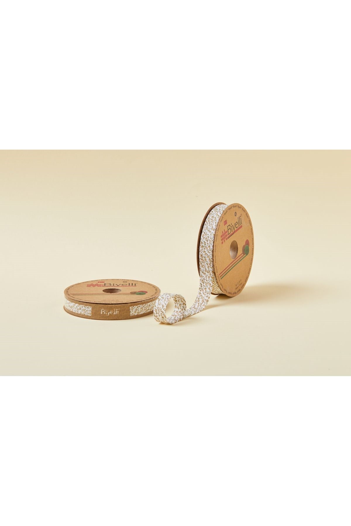 Biye Beyaz Çiçekli Katlı A04 Kahverengi 2 cm 25 Metre %65 Koton %35 Polyester