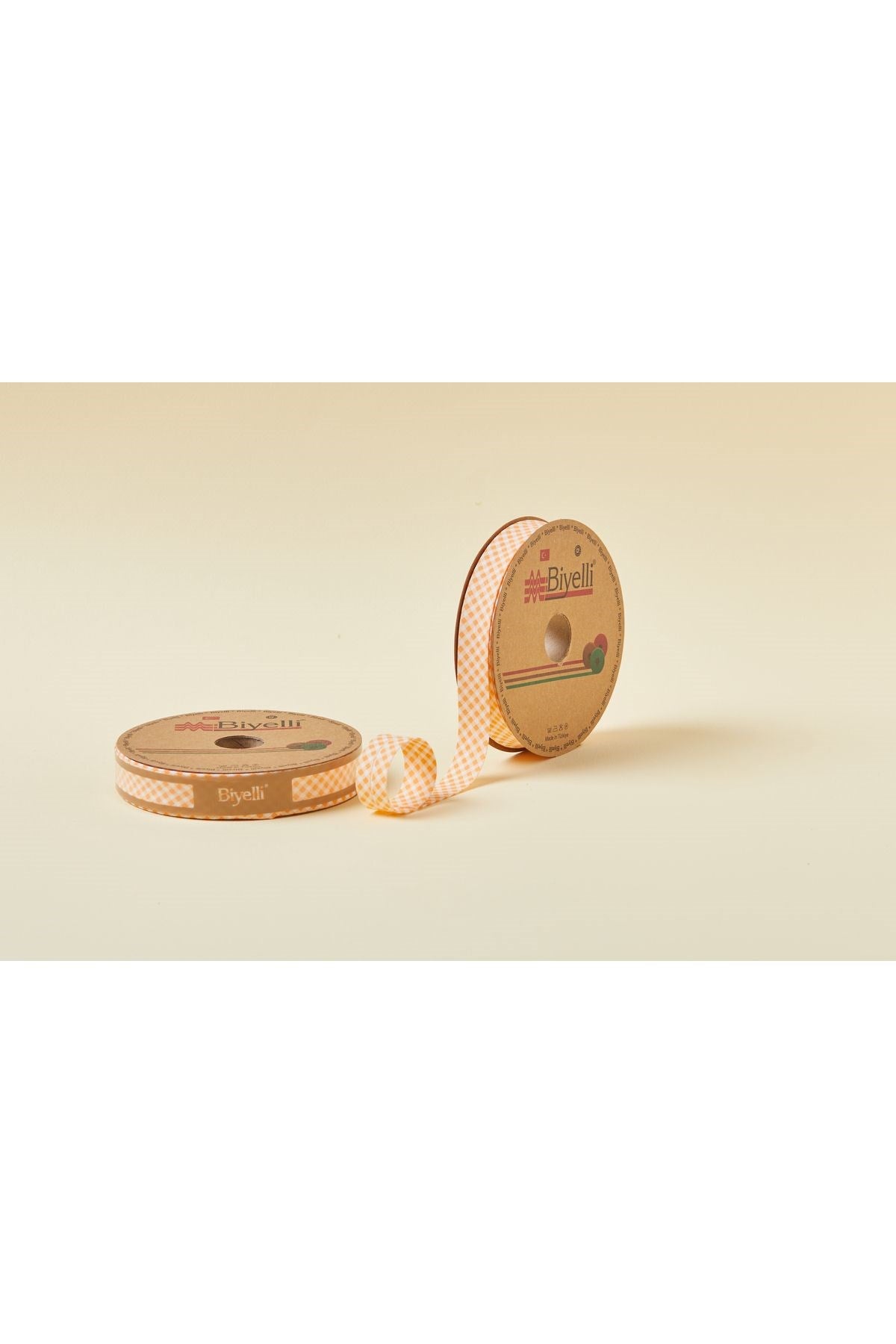 Biye Ekoseli Katlı E06 Turuncu 2 cm 25 Metre %65 Koton %35 Polyester