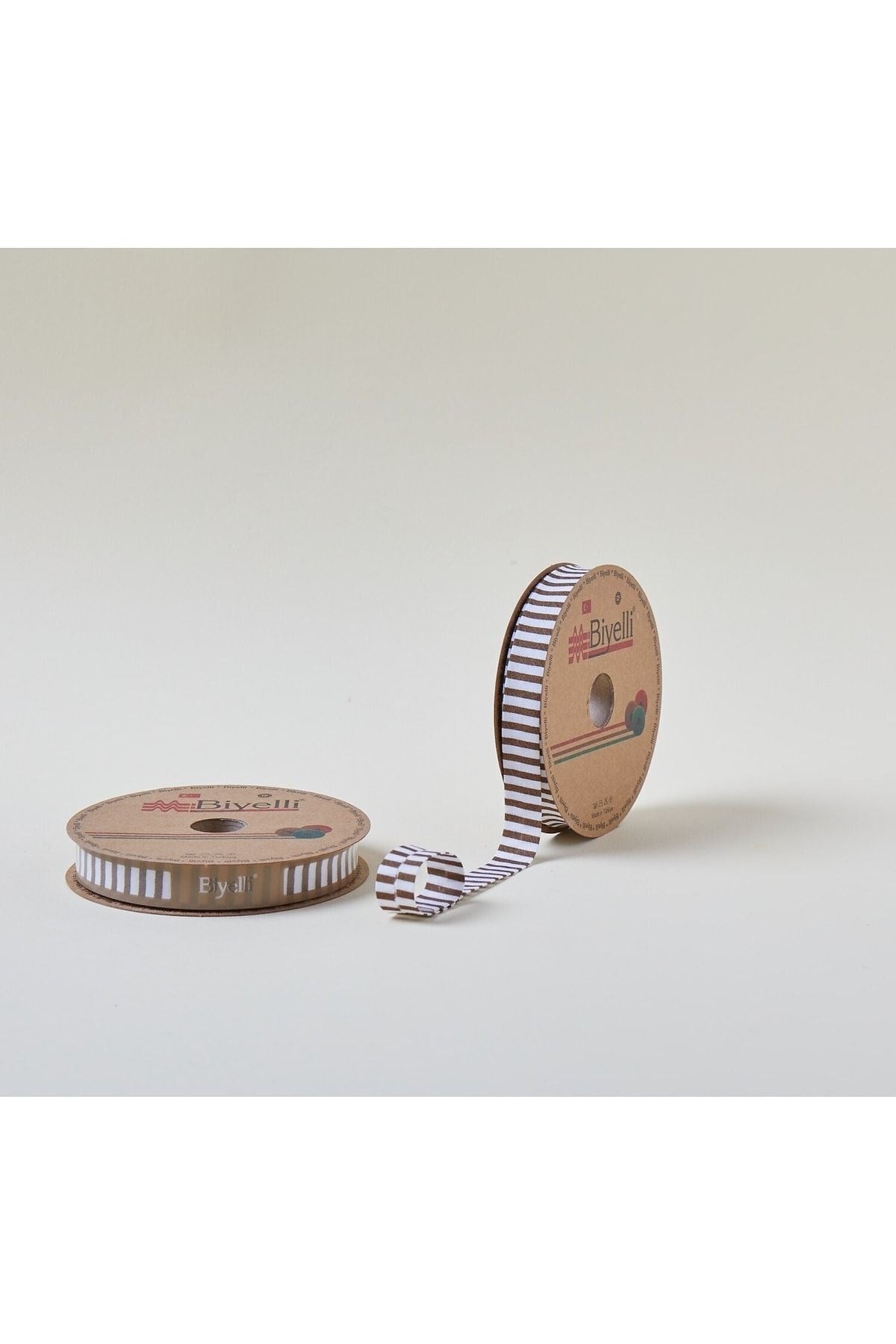 Biye Kalın Çizgili Katlı F05 Kahverengi 2 cm 25 Metre %65 Koton %35 Polyester