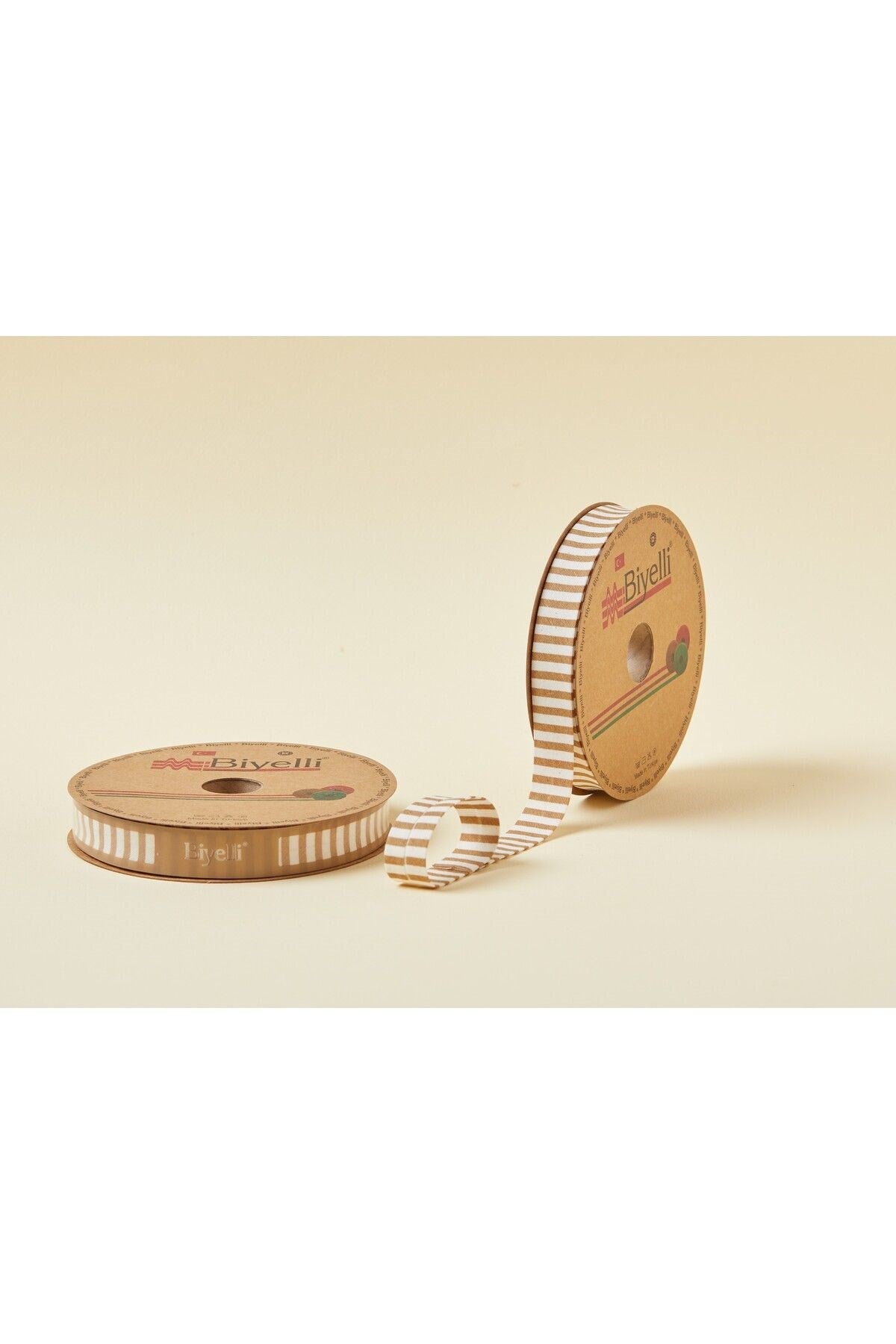 Biye Kalın Çizgili Katlı F13 Bej 2 cm 25 Metre %65 Koton %35 Polyester