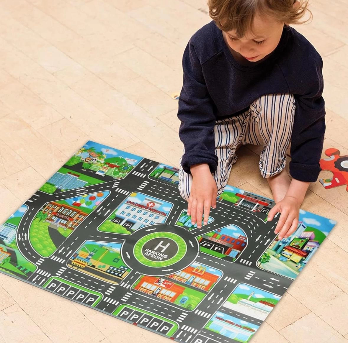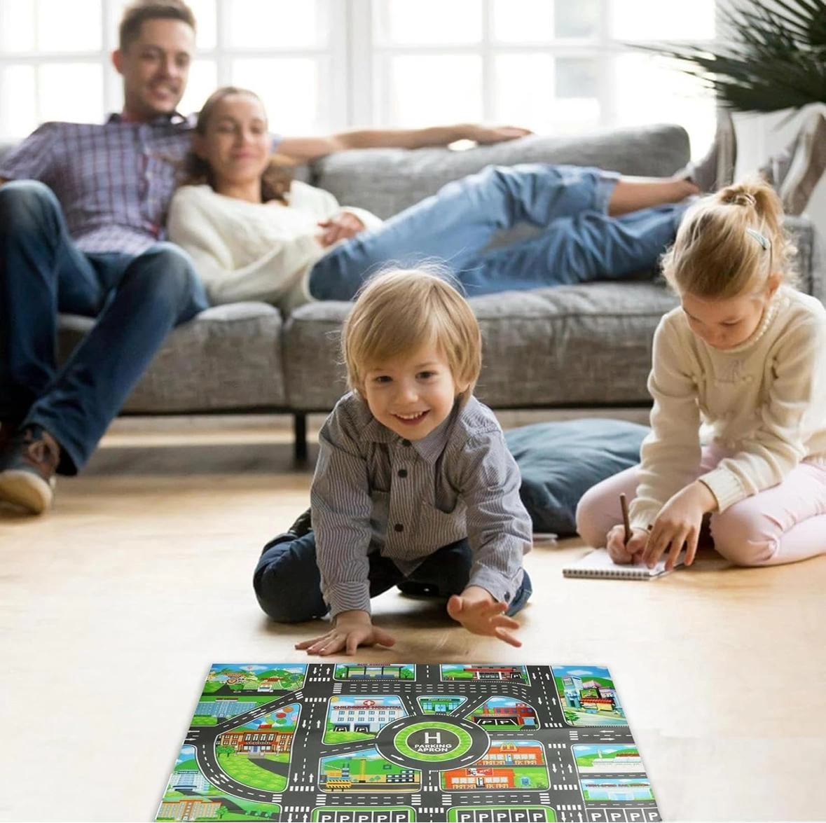- Yolda Oyun Süresi: Araba Halımızda renkli bir şehir manzarasını keşfedin ve canlı yollar ve binalarla yol maceralarını daha ilginç hale getirin. Çocuğunuzun hayal gücünü harekete geçirin ve daha fazla eğlenceyi teşvik eden canlı bir oyun alanı yaratın.