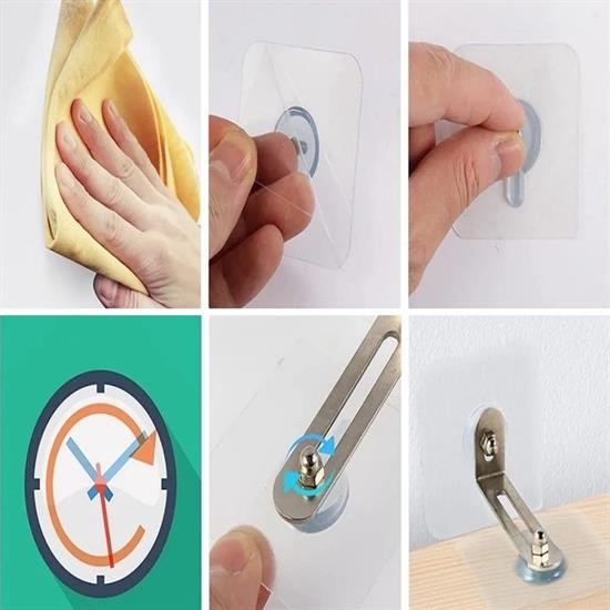 Çivisiz ve Duvarı Delmeden Montaj: Bu eşya sabitleyici aparat, duvarı delmeden ve çivi kullanmadan monte edilir. Özel yapışkanlı bantları kullanarak kolayca duvara sabitlenir. Bu sayede duvarınızda herhangi bir hasar oluşmadan eşyalarınızı güvenli bir şekilde sabitleyebilirsiniz.