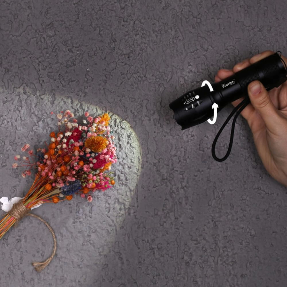 WT-023 zoomlu özelliği sayesinde avcılık için çok yönlü avantajlar sağlıyor ve avınızın vazgeçilmezi haline gelecektir, yabani hayvanları, kuş ve balıkları, canlı veya cansız olarak ele geçirmek için yapılmıştır. Aydınlatma alanını büyütmek için yakınlaştırın.Işığı toplamak ve en parlak parlaklığı elde etmek için uzaklaştırın. İleri teknoloji tasarım ve yağmur suyuna dayanıklı tasarımı (El feneri arasında etkileyici performans) dayanıklı alüminyum gövdesi ve darbelere karşı dayanıklı yapısı ile sizlerin beğenisine sunuyoruz.2000 lümen (max) LED neredeyse 2 km ulaşır. Genişten dar alana kadar tamamen zum yapılabilir.