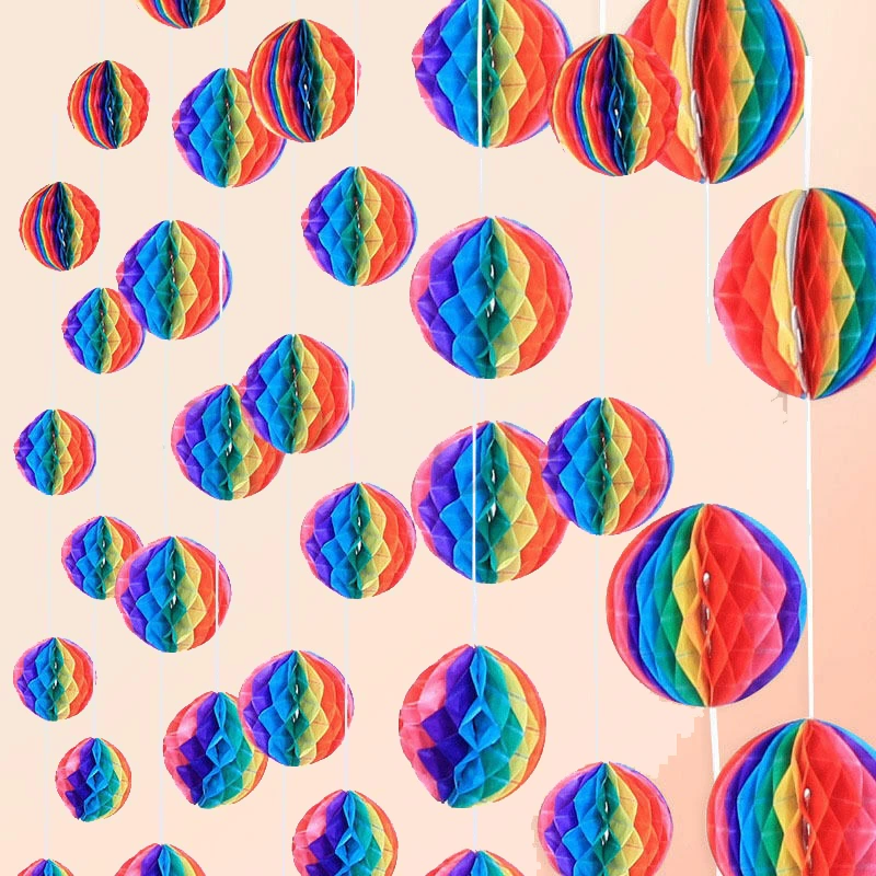 Gökkuşağı Renkli 30 Cm Rengarenk Kağıt Süs Fener 1 Adet