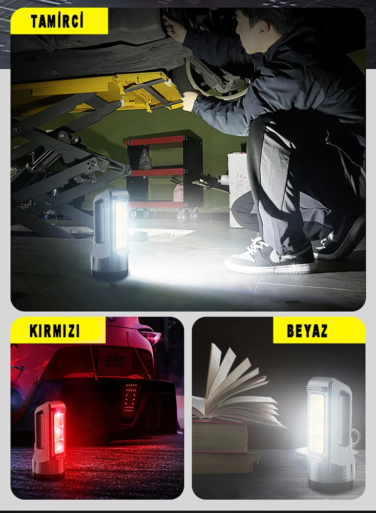 Kullanım Özellikleri :Masa Üstünde Taşıma Askısı İle Elde Ve Duvara Monte , Her Yeri Kolay Aydınlık