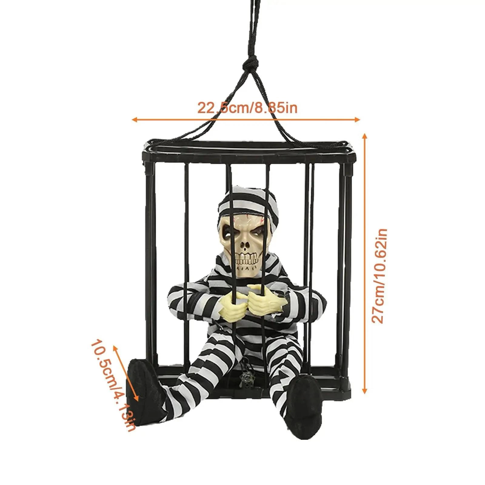 Hareketli Sesli Sensörlü Mahkum Görünümlü Kuru Kafa İskelet Dekorasyon 22x27 Cm