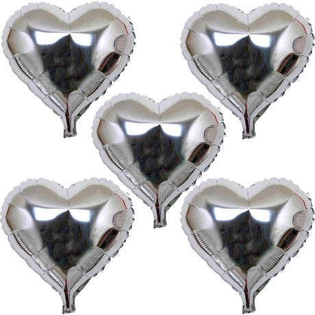 Kalp Şekilli Gümüş Renk Folyo Balon 45 cm 5 Adet (4620)