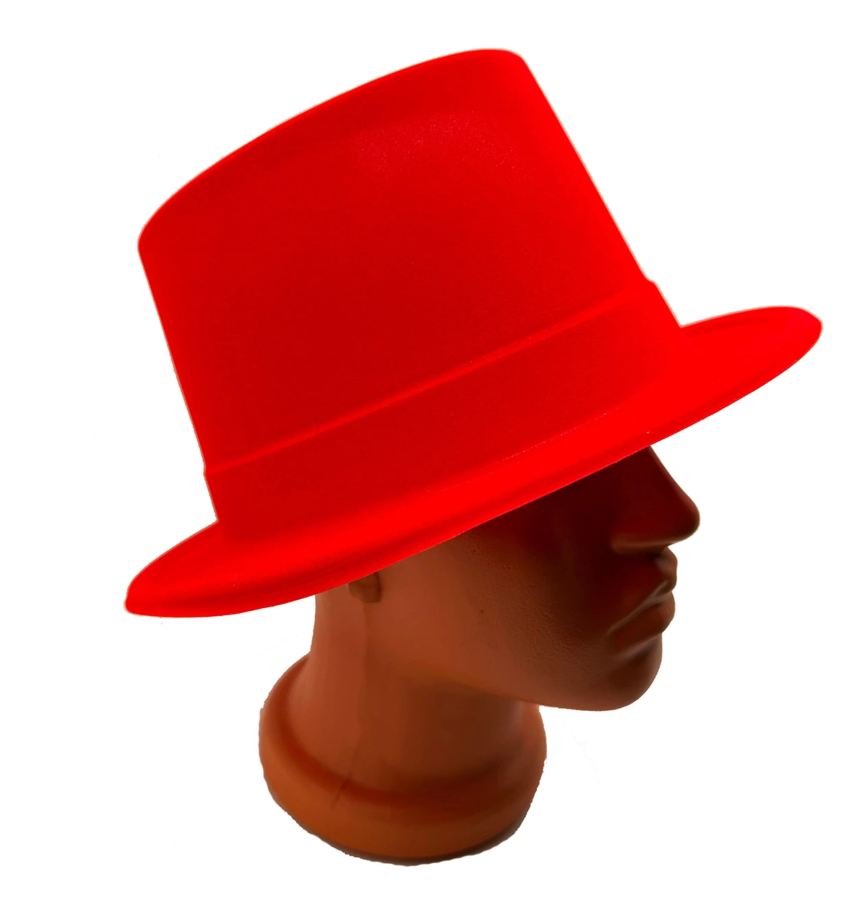 Kırmızı Renk Plastik Nubuk Kadife Flok Kaplama Fötr Şapka 11 Cm