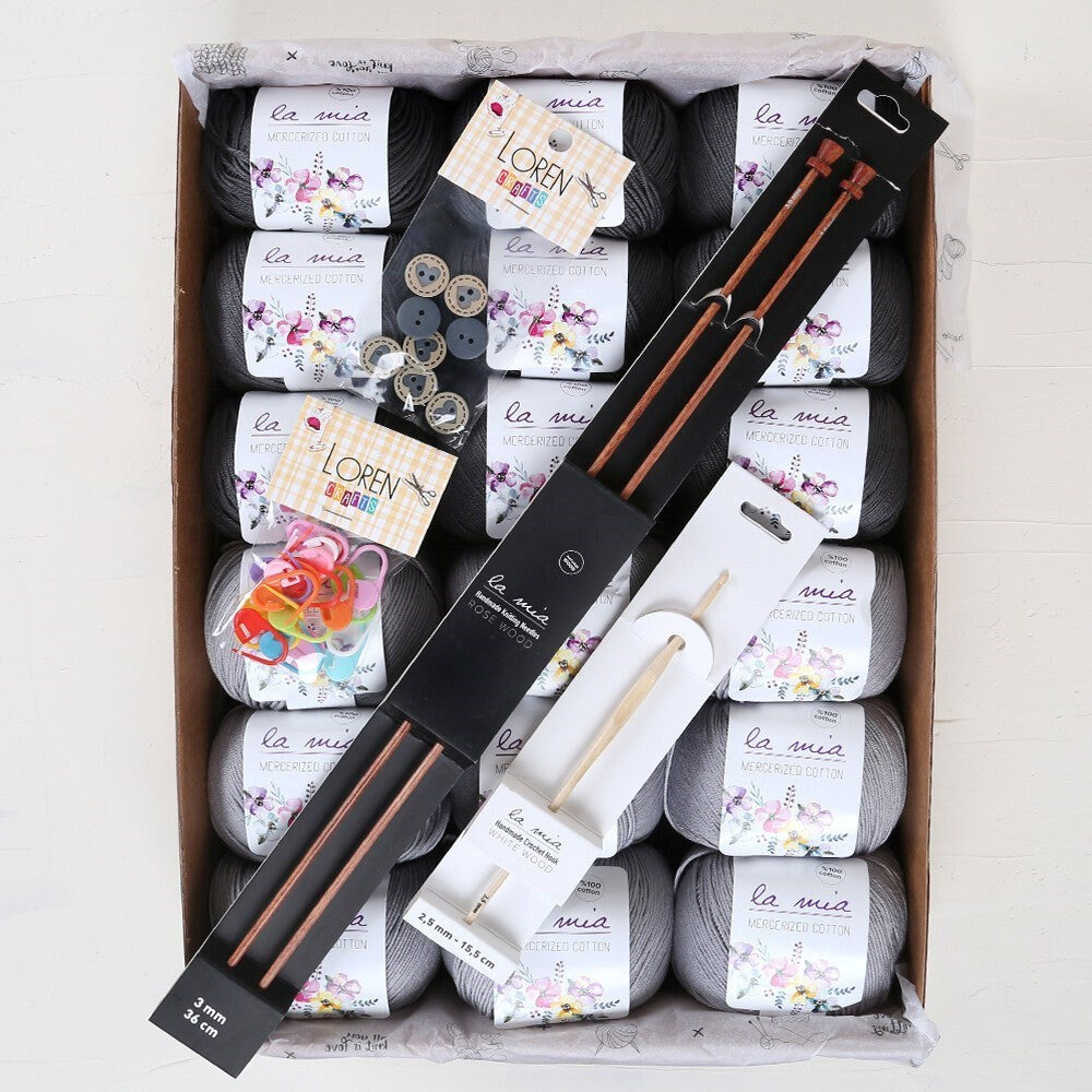 9 Adet La Mia Mercerized Cotton Gri El Örgü İpi - 232