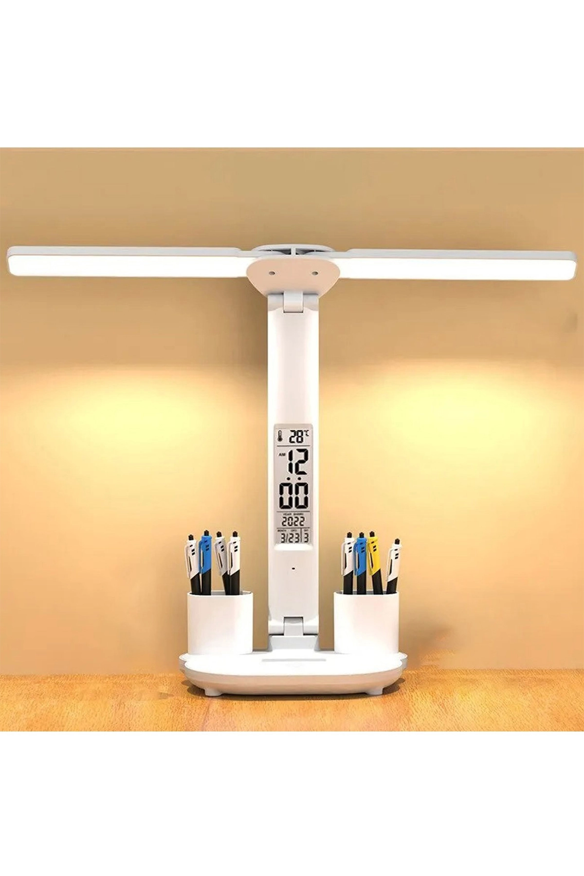 5in1 Çok Fonksiyonlu Şarjlı Masa Lambası+Saat+Termometre+Takvim+Kalemlik+Telefon Tutucu