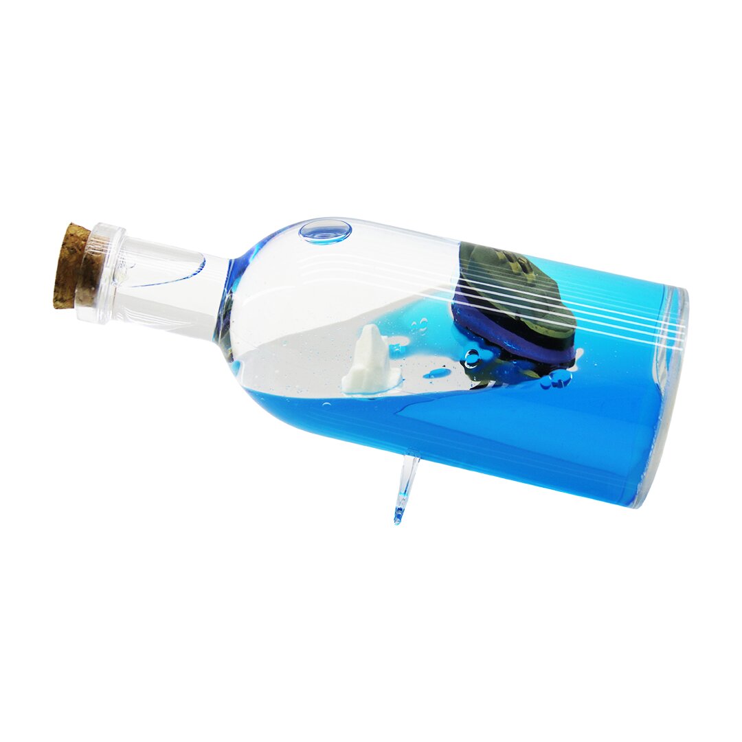 MAVİ SU - ADALI YUVARLAK MİKA ŞİŞE=YAN DURUŞ AYAKLI YÜZEN BATMAYAN GEMİ DEKORATİF BİBLO AKVARYUM 6