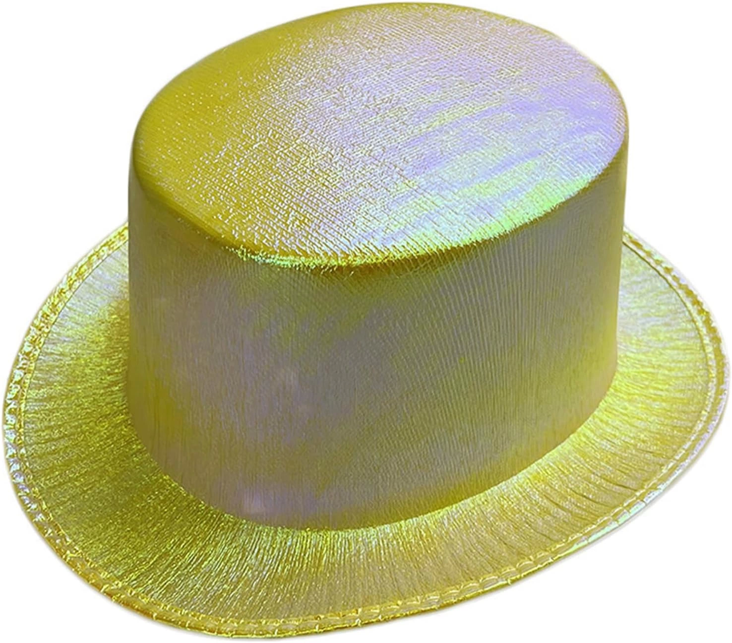Sarı Renk Işıltılı Hologram Kumaş Kaplama Fötr Silindir Şapka Yetişkin Boy, partiler, festivaller ve diğer özel günler için mükemmel bir aksesuardır. 58 cm baş çevresi için uygundur ve ışıl ışıl parıldayan yeşil hologram kumaşla kaplıdır.