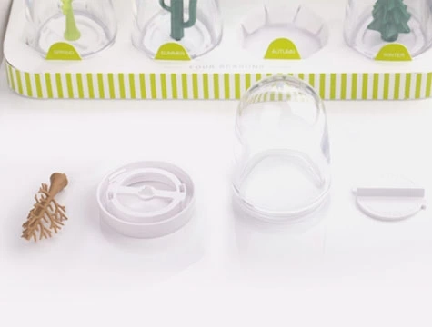 Dört Mevsim Baharatlıklar, "kar küresi" şeklinde tasarlanan yapısıyla her baharat için farklı bir mevsim görünümü oluşturarak bu sıradışı fikir ve estetik görünümle damak tadınızla birlikte gözünüze de hitap ediyor.