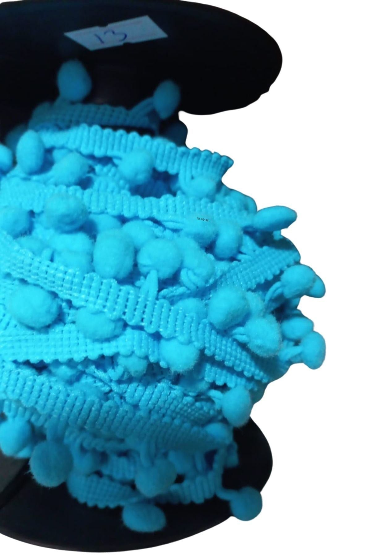 Sıralı Ponpon 1 Metre Bebe Mavisi
