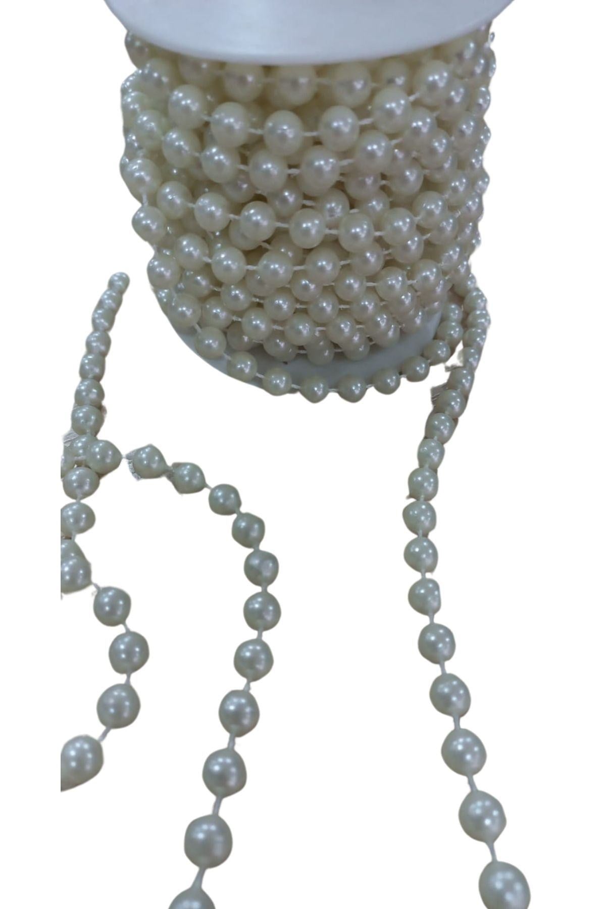 Sıralı Yuvarlak İnci En 1 cm Krem 1 Metre