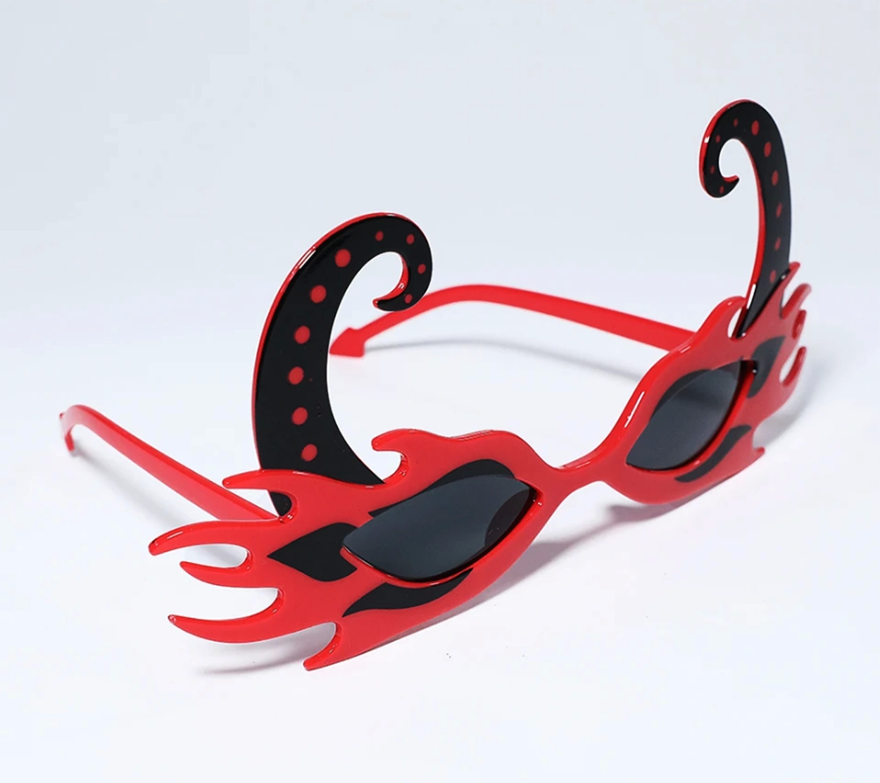 Siyah Boynuzlu Kırmızı Renk Alevli Parti Gözlüğü 21x10 Cm
