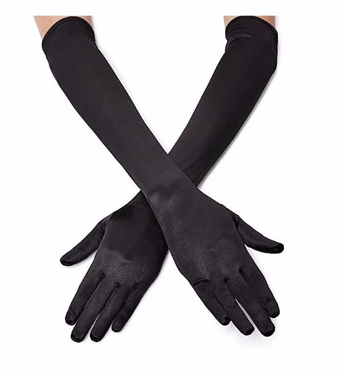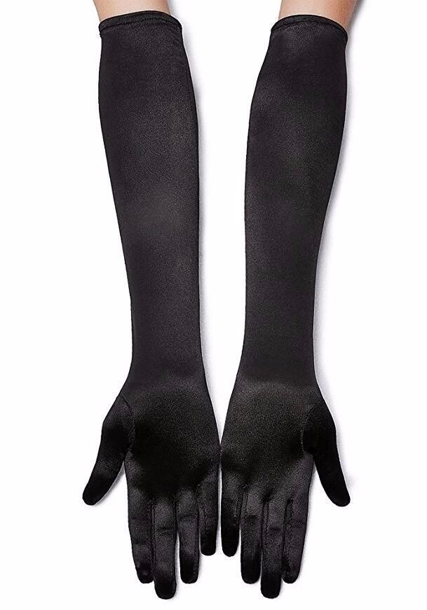 Siyah Renk Likralı Dirseğe Kadar Uzun Kumaş Eldiven 40 Cm