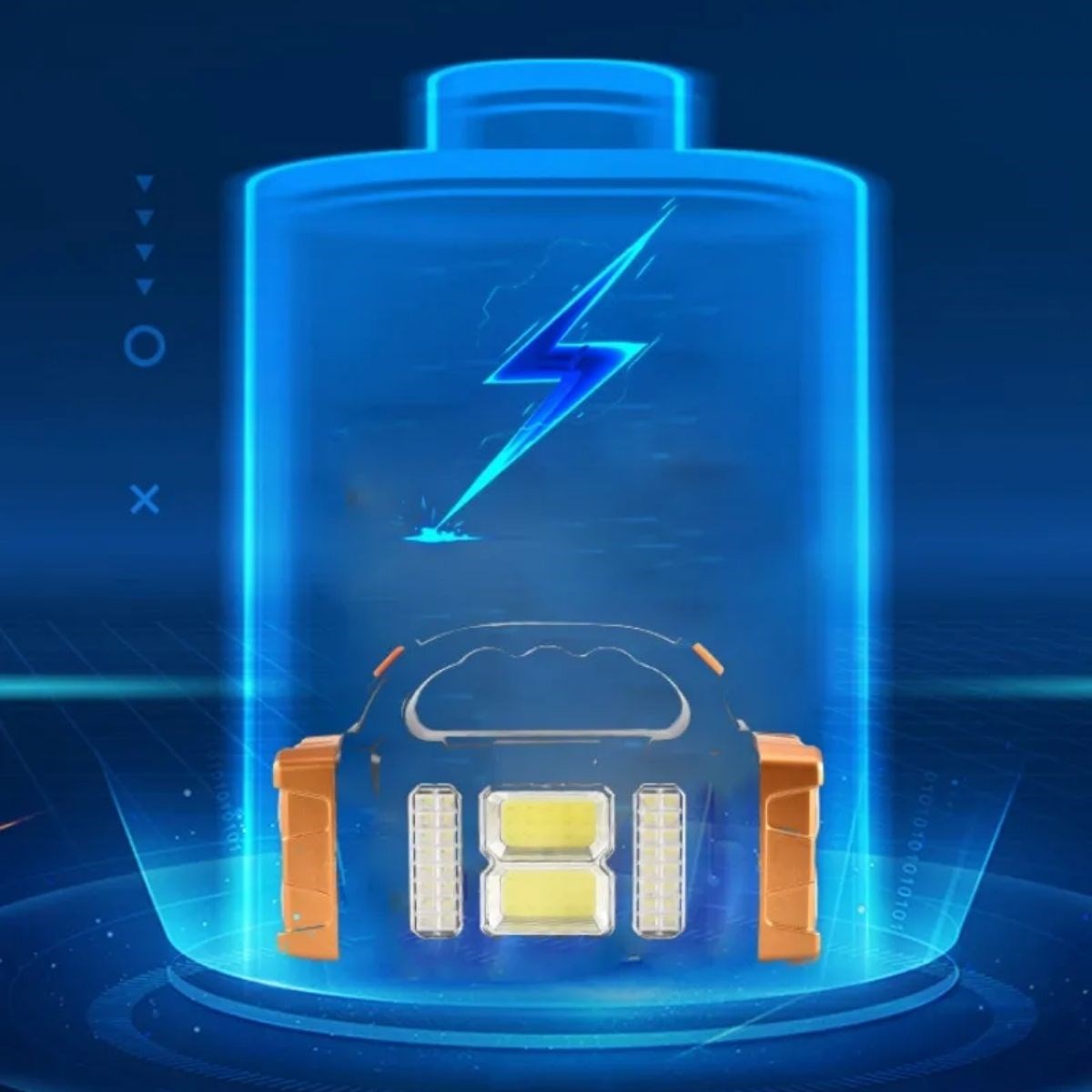 ® Solar ve USB Şarjlı LED + COB El Feneri | 1500 mAh Şarjlı Taşınabilir Çalışma Işığı-Su Geçirmez