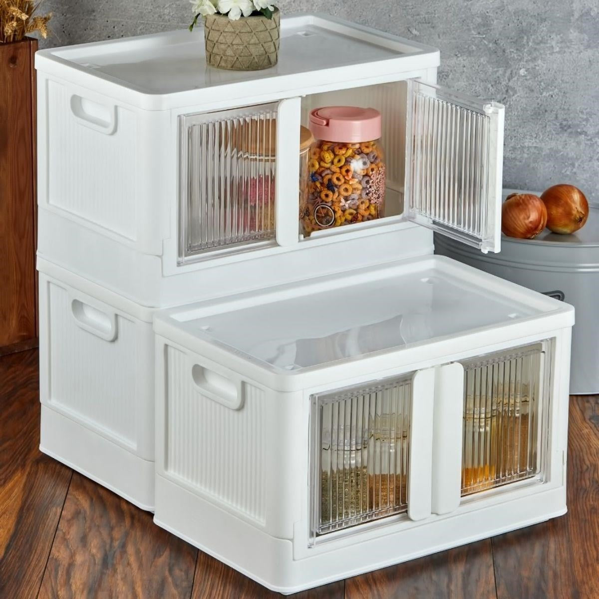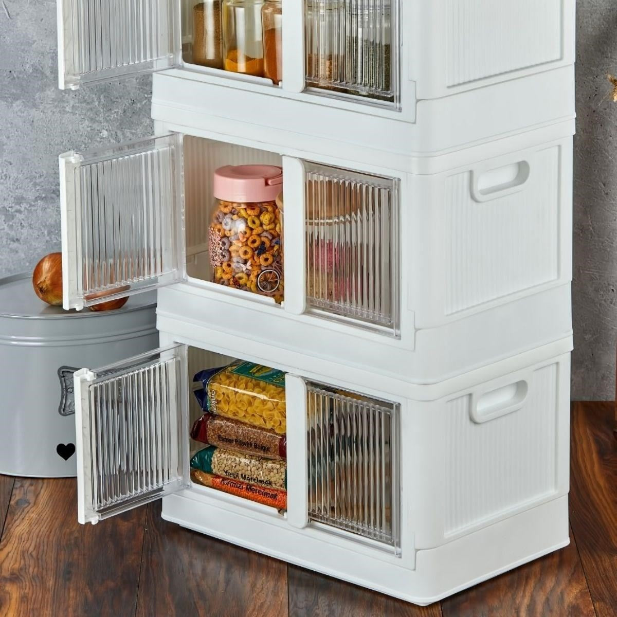 ®'ın tek katlı çift kapaklı demonte mutfak ve banyo düzenleyici plastik rafı, pratik yapısı ve işlevselliğiyle mutfak ve banyo düzeninde kolaylık sağlar.