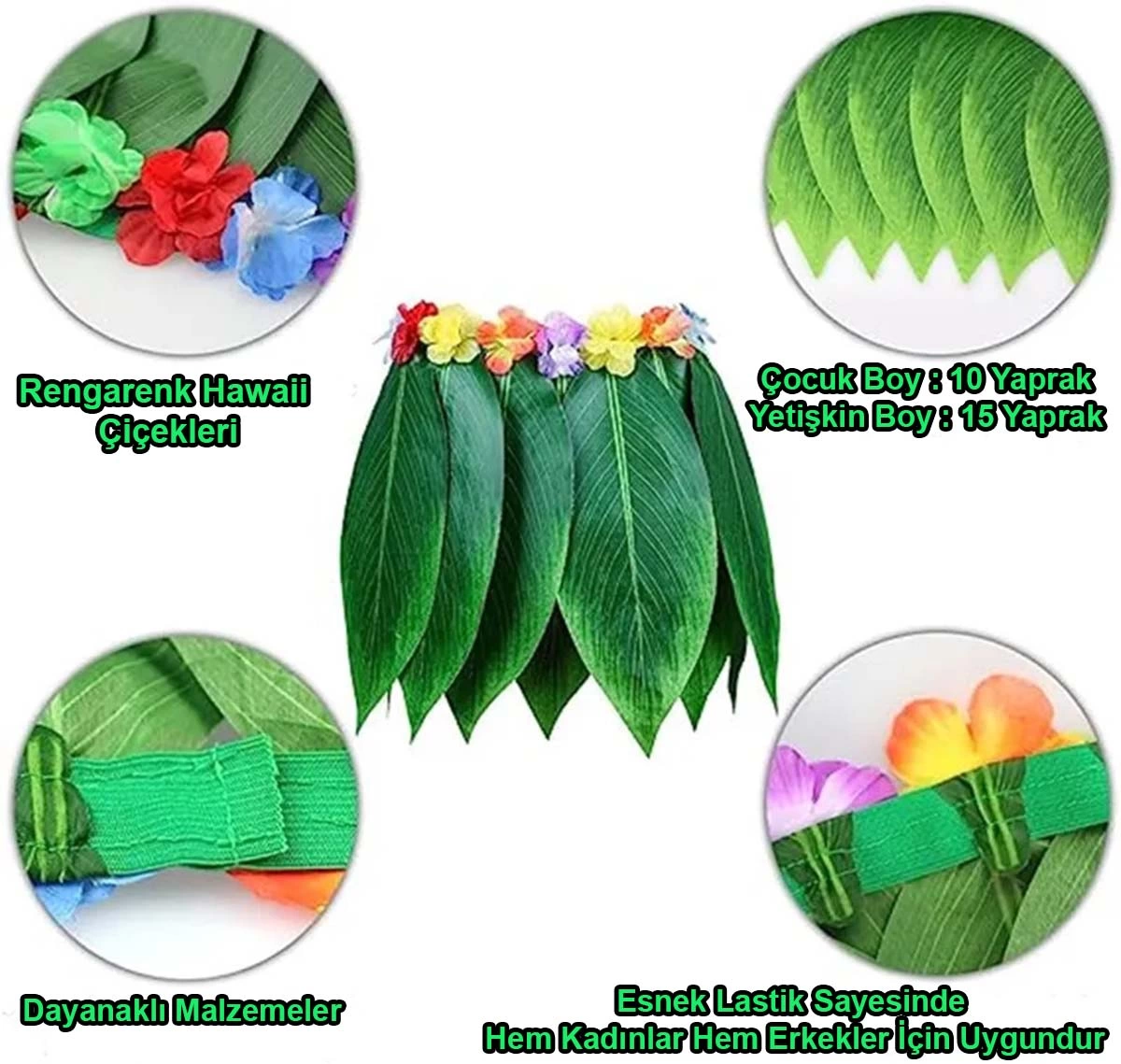 Tropikal Esintili Hawaii Yapraklı Parti Eteği Çocuk Boy