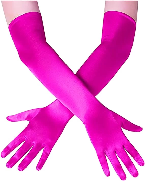 Uzun Boy Ekstra Parlak Saten Eldiven Fuşya Renk